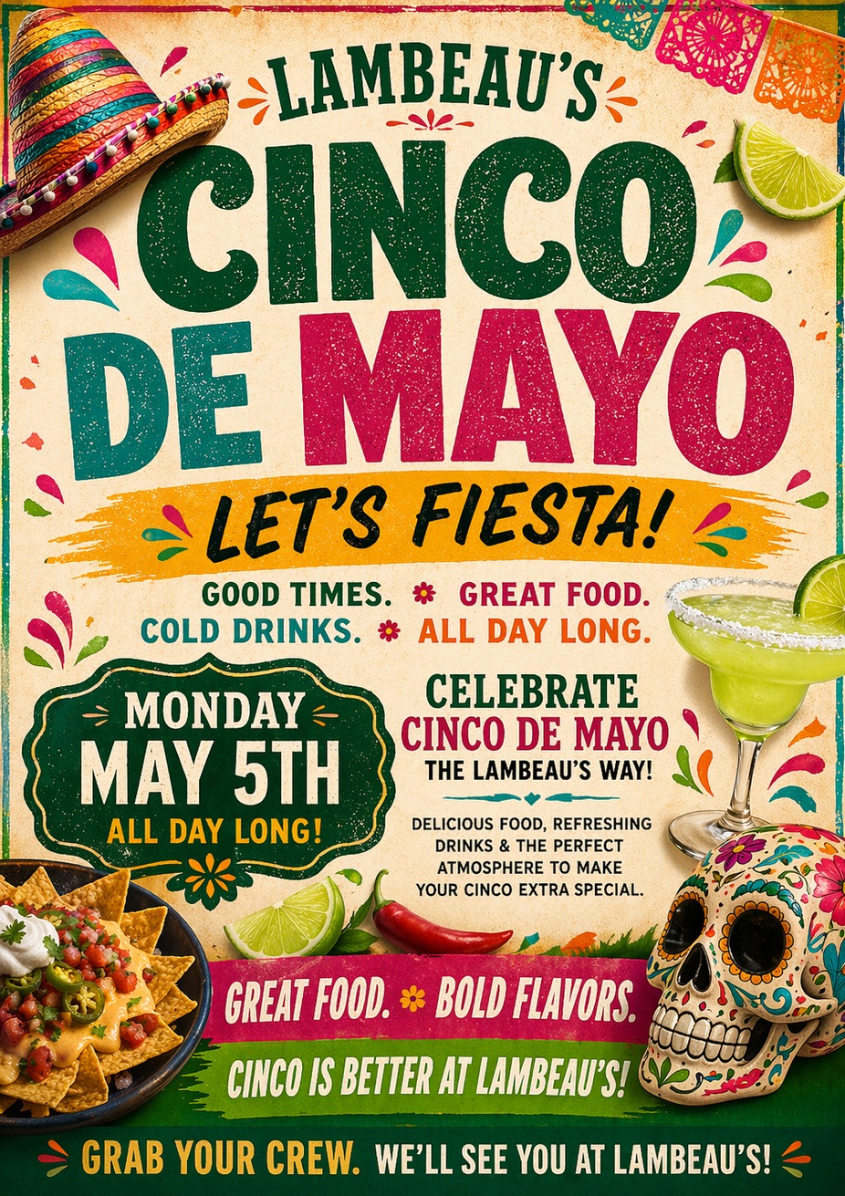 Don't miss this Fiesta at Lambeau's where we will have the best Margarita in town for you!